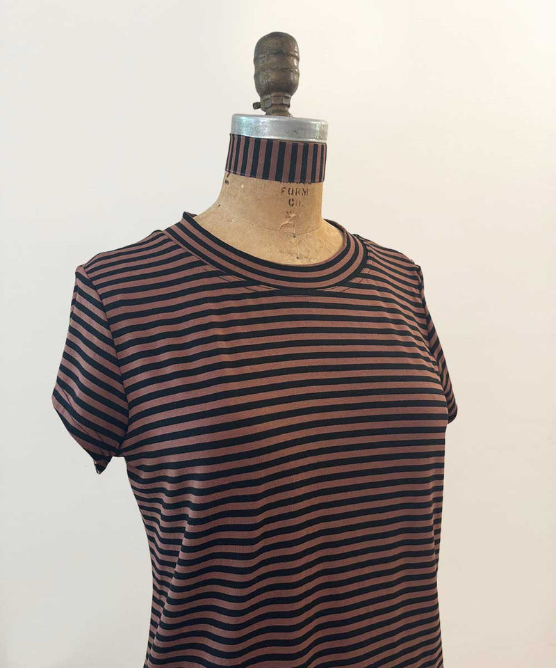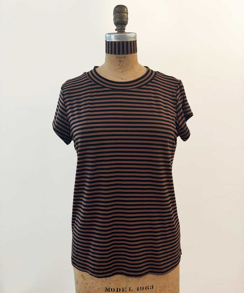 חולצת פסים סיישל שרוול קצר, פטנט ניקי רחב.
