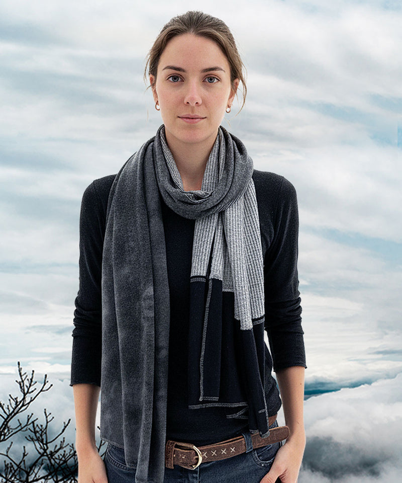 צעיף פסים רחב ומלטף שעשוי מבד רך במיוחד, והוא בדיוק מה שאת צריכה לימים הקרים. בגוונים מטריפים: אפורים, בג' או כחולים לבחירתך.
