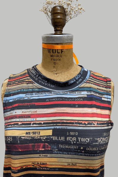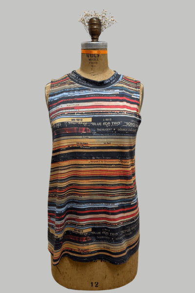 גופיית ניקי פטנט רחב בהדפס פסים דמויי ספרים מבד ויסקוזה קליל וקייצי