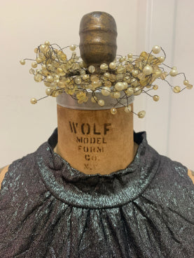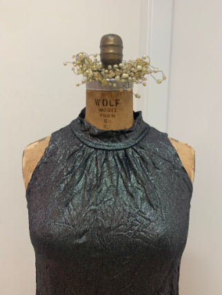 גופיית ערב נוצצת ועשירה, צווארון גולף מעוטרת בכיווצים, מתאימה עם ג'ינס ליום יום ועם מכנסים מחוייטים לערב.
