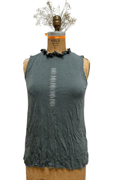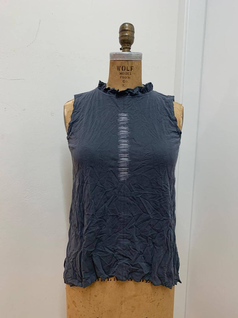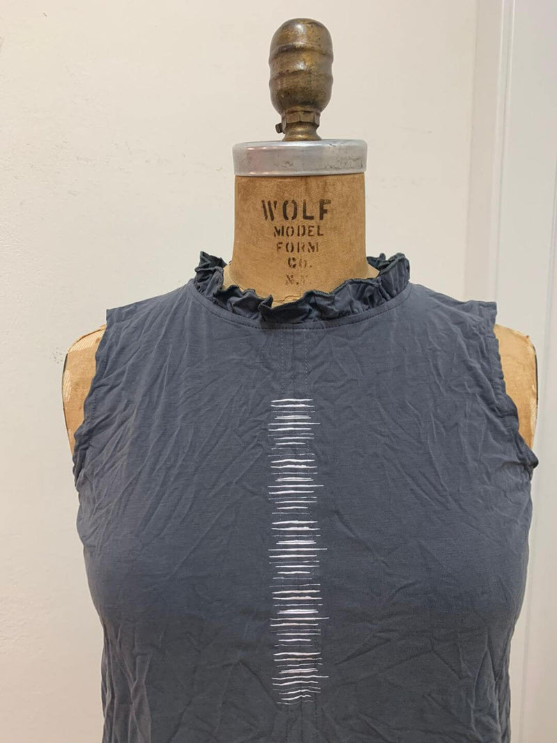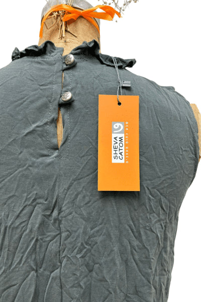 גופיית קופרו רך ונעים, צווארון מחמיא כמו כתר ,מעוטרת בדפוס פספסים דיגיטלי .רכיסת כפתורים בגב