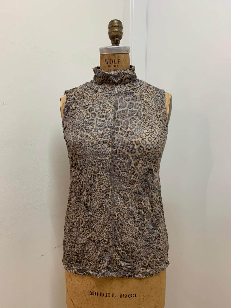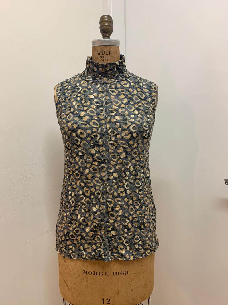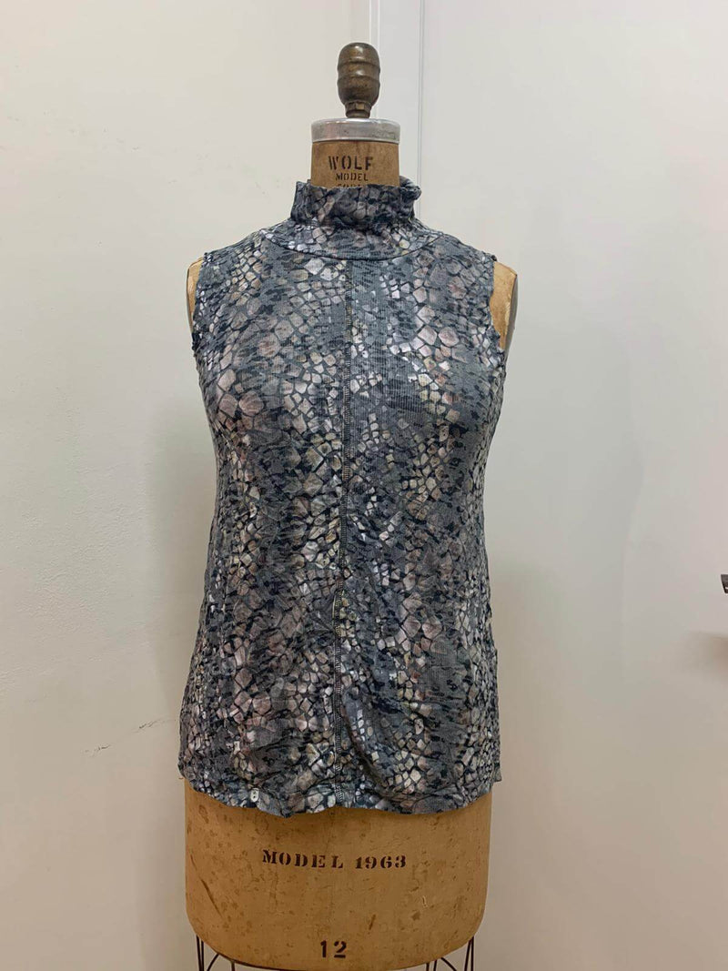 גופיה צווארון גבוהה חיתוך אמצע קדמי , ריב צרוב מודפס