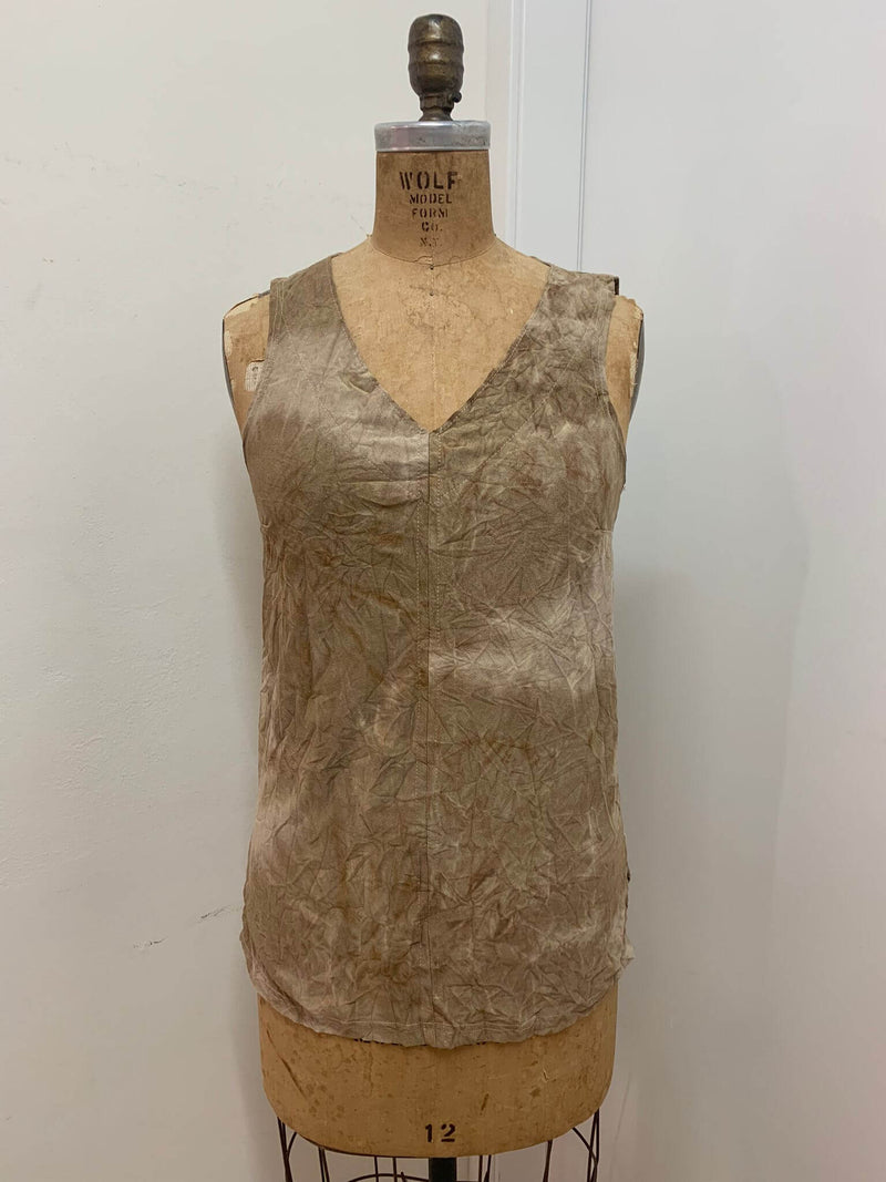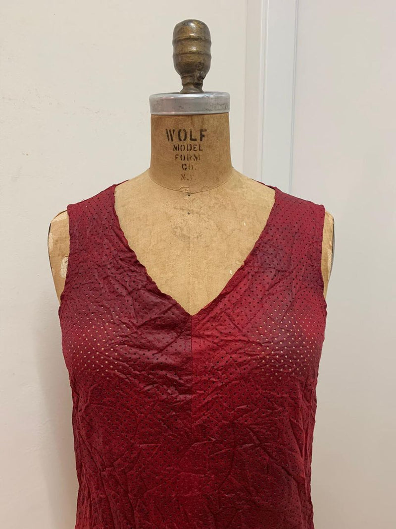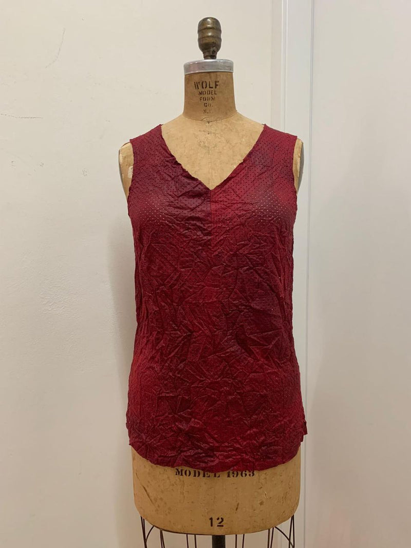 גופיית דמוי עור בקימוט עדין במפתח וי מחמיא ומאוורר