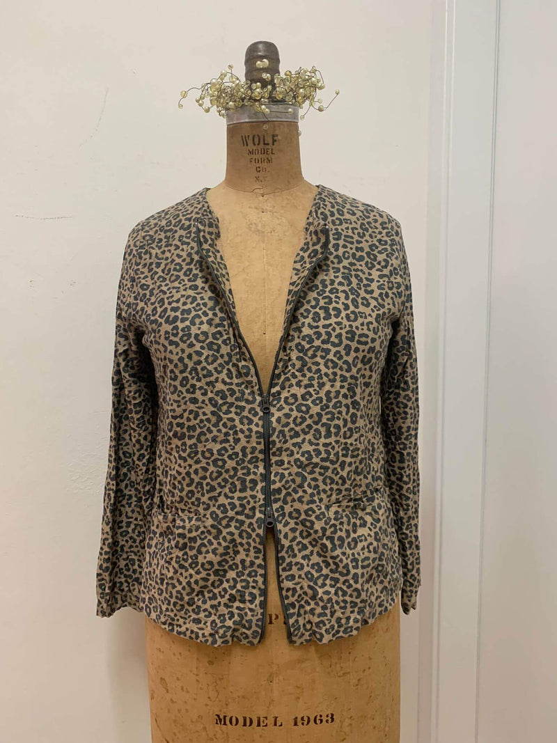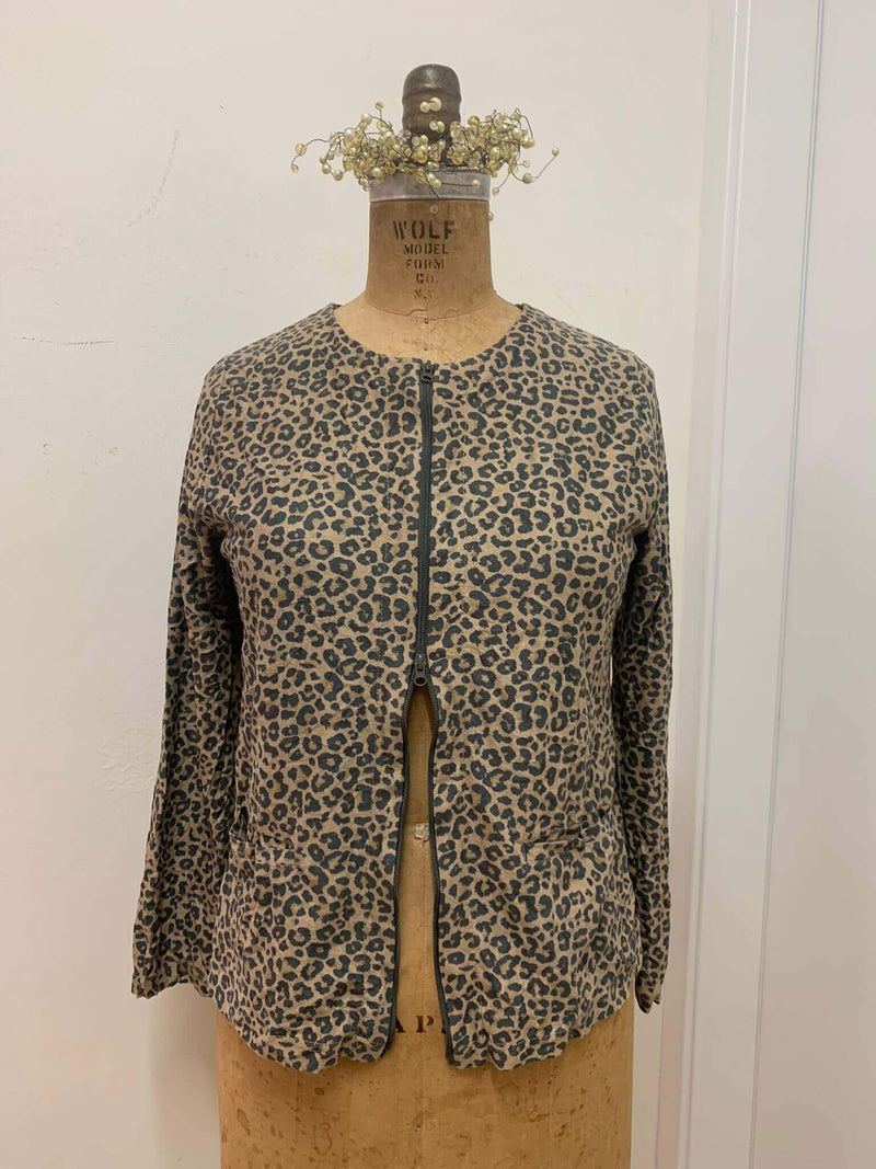 ג'קט דמוי עור דקיק רך ונעים להפליא, בהדפס מנומר, בקימוט עדין, רוכסן דו כיווני