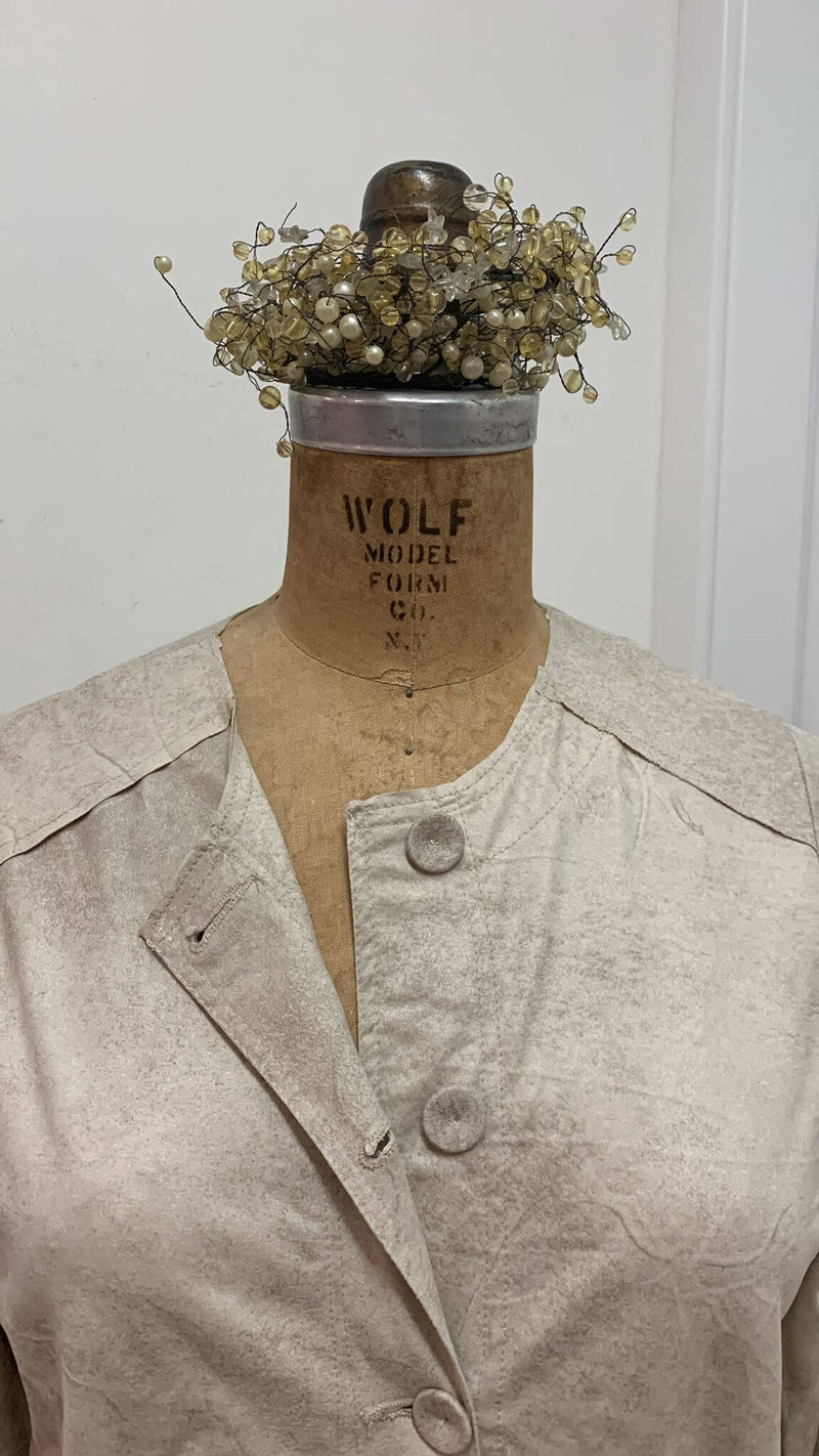 ג'קט אורך ביניים מפתח ניקי תיפורים חיצוניים, כיסים, ורכיסת כפתורים מצופים