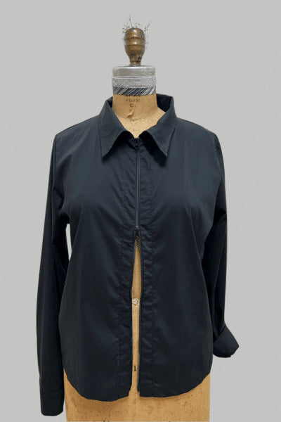 גזרה אלגנטית ונקייה: צווארון גברי ורוכסן קדמי.