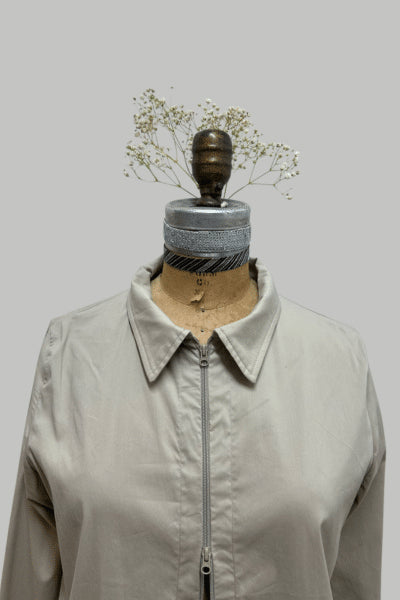 גזרה אלגנטית ונקייה: צווארון גברי ורוכסן קדמי.