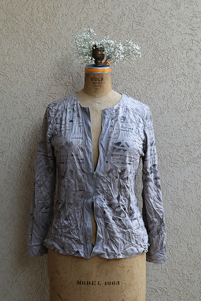 ג'קט רוכסן מבד דמוי עור דק, מחשוף ניקי הדפס ייחודי עם קימוט עדין