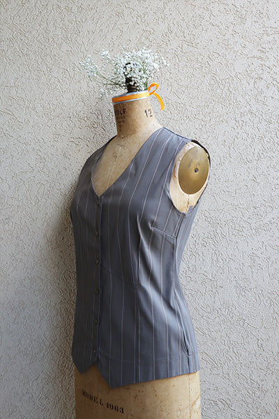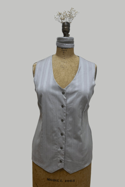 אפודת V מחוייטת, אלגנטית ומחמיאה. עם מכנסיים מחוייטים רגל רחבה לארוע עם ג'ינס ליום יום.