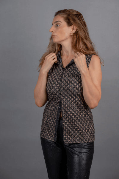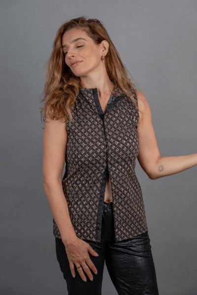 אפודה מחויטת רכיסת תיקתקים בדי וינטג' דפוס רטרו' ייחודים וגמישים