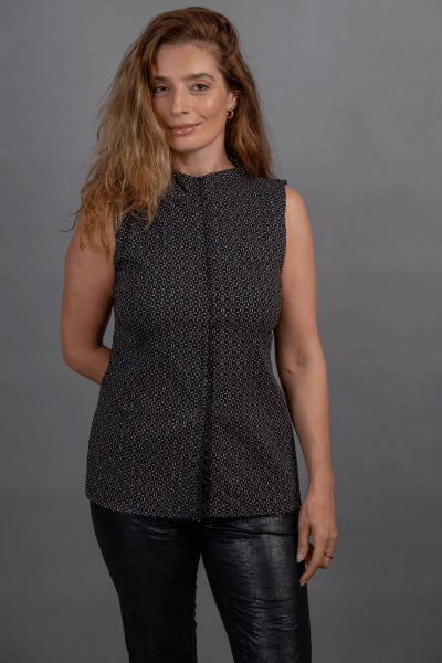 אפודה מחויטת רכיסת תיקתקים בדי וינטג' דפוס רטרו' ייחודים וגמישים