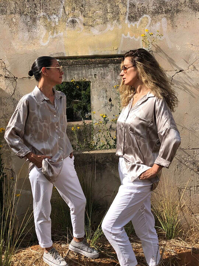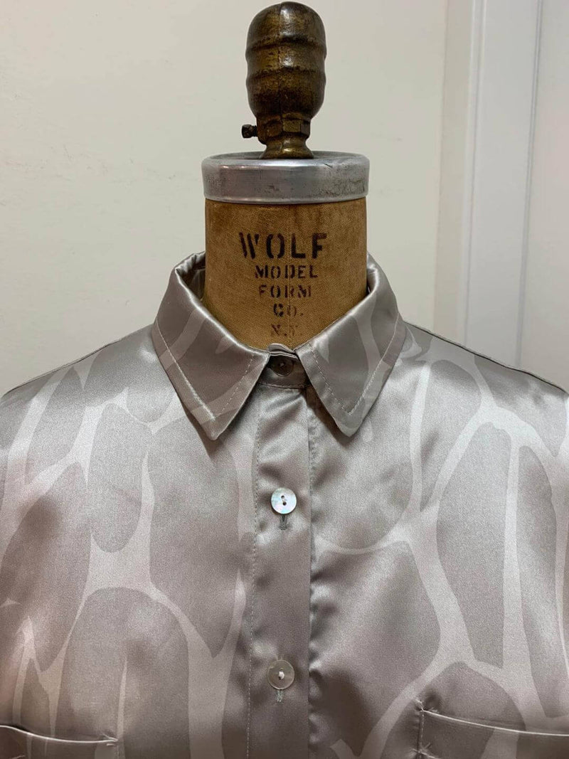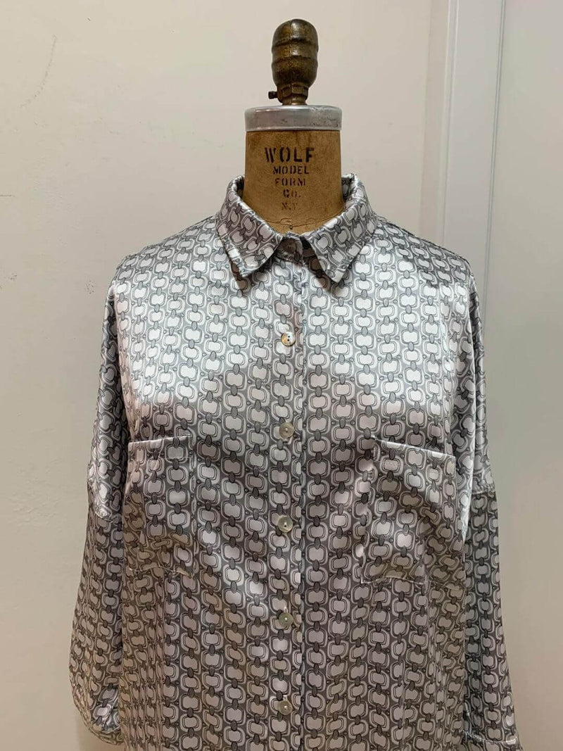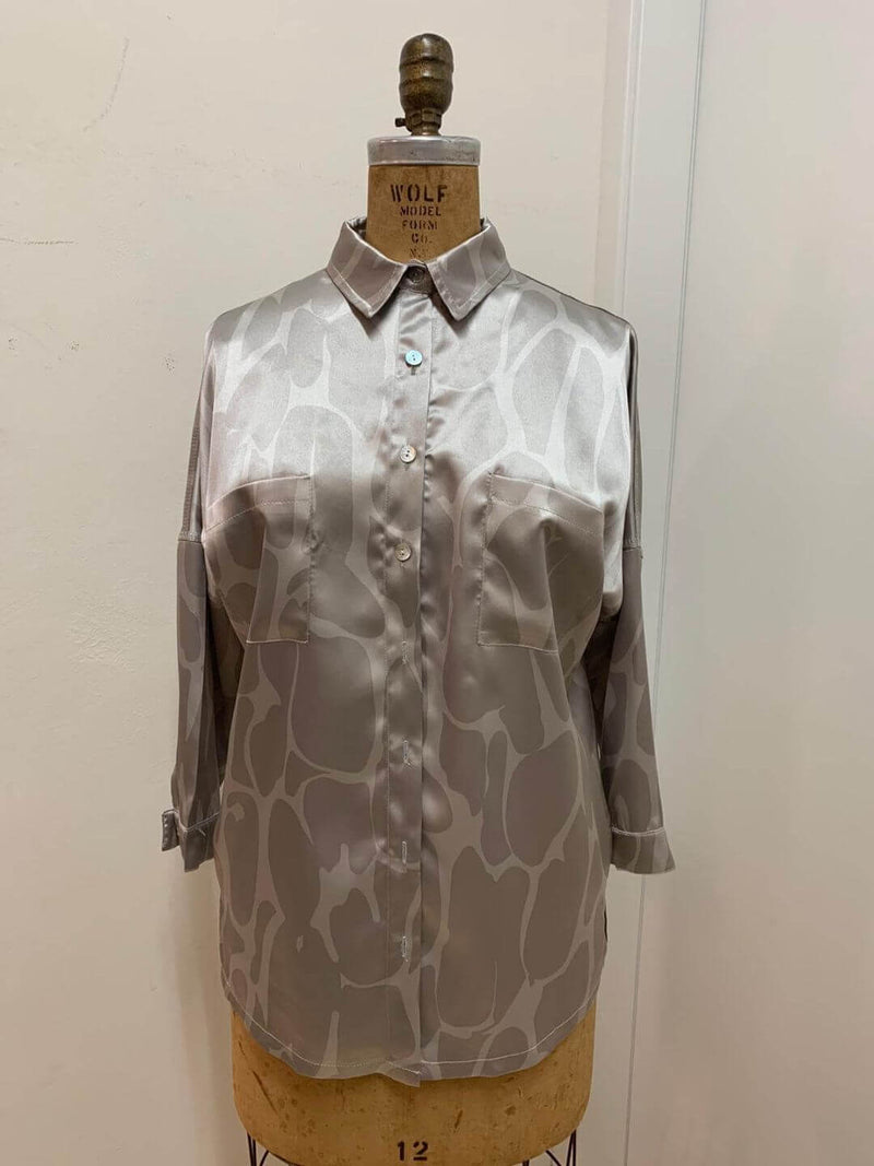 חולצה מכופתרת מסאטן איכותי רך ונשפך, בגזרת סמי אוברסייז