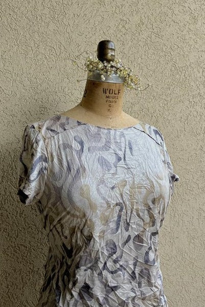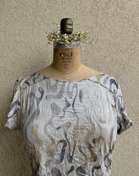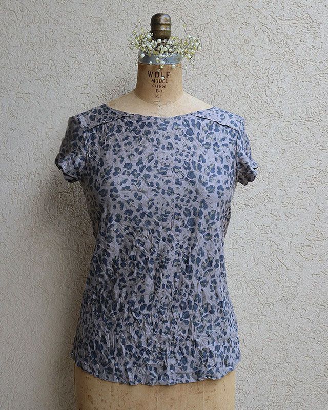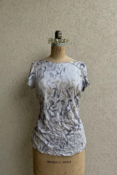 חולצה שרוול קצר מיוחדת, מבד נדיר שעבר פינוק יצירתי בעבודת יד