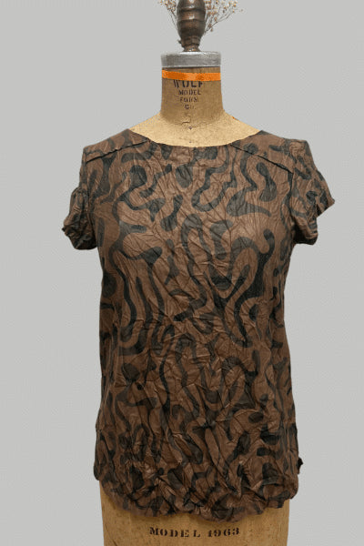 חולצה שרוול קצר מיוחדת, מבד נדיר שעבר פינוק יצירתי בעבודת יד