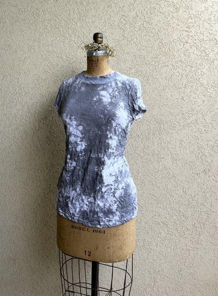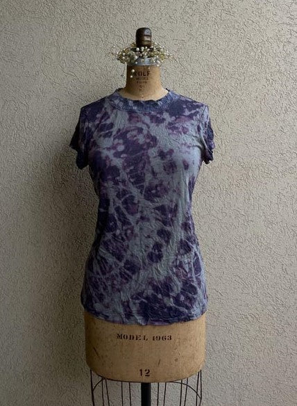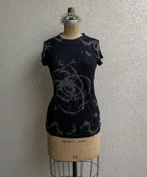 חולצה שרוול קצר מיוחדת, מבד נדיר שעבר פינוק יצירתי בעבודת יד