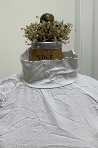 חולצת החג האולטמטיבית! חולצה מבד לבן נדיר בגמישותו ונעימותו, עם חיתוכי גסקה צווארון גבוה מתקפל בקלילות. מתאימה לכל מכנס או חצאית, בשילוב ג'קטון - הופעה מושלמת!