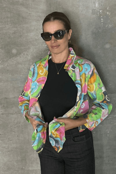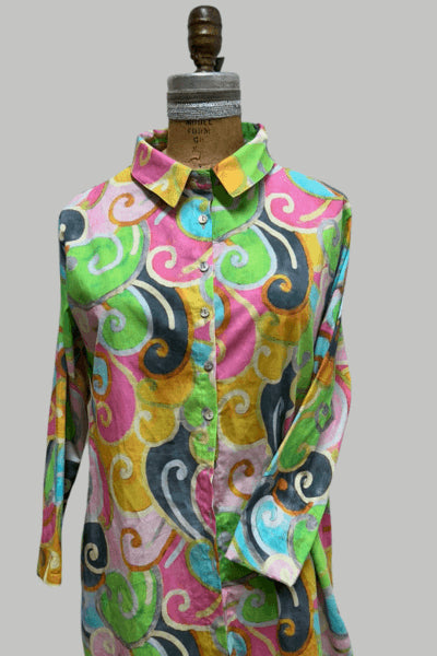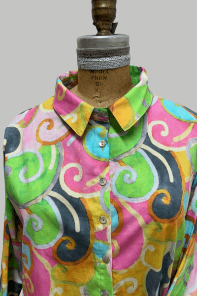 100% חולצת כפתורים משובחת בדפוס נדיר ומשמח