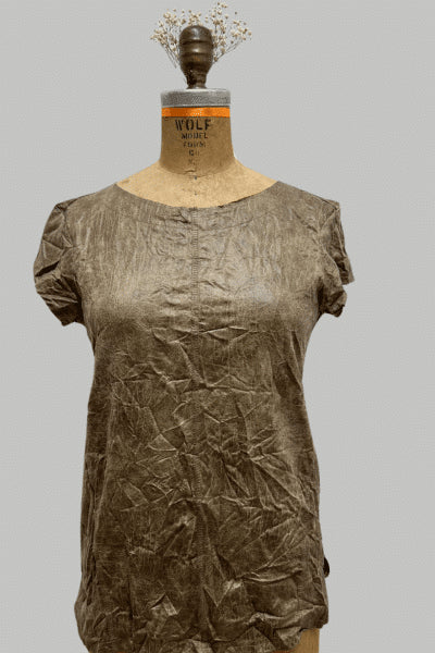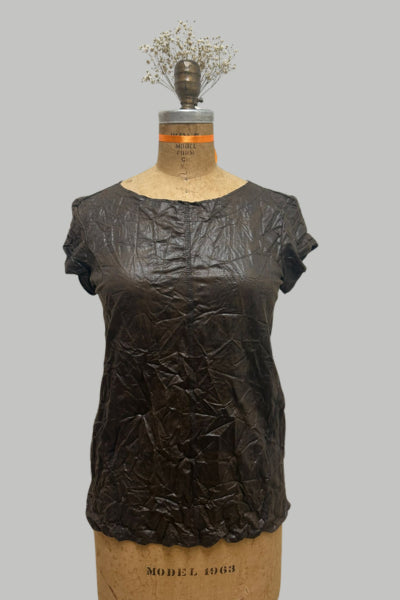 חולצת דמוי עור מפתח ניקי שרוול קצר ,בקימוט עדין
