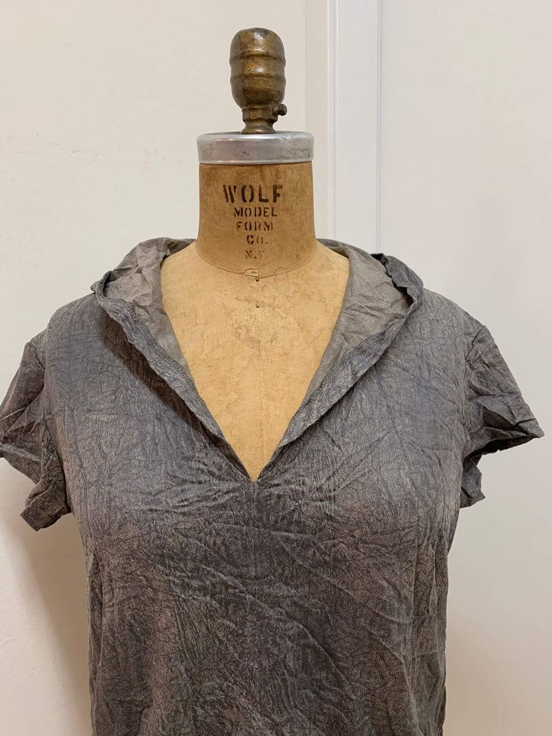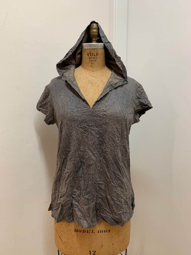 חולצת קפושון מדליקה! שרוול קצר, מבד דמוי עור מקומט. מתאימה גם למכנס אלגנטי וגם למראה קזואל עם ג'ינס.