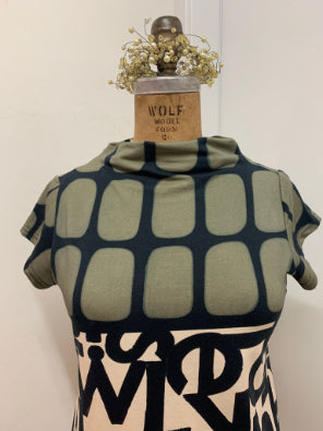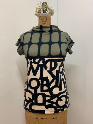 חולצת צווארון מוגבה מתקפל שרוול קצר, שליצים בצדדים, בהדפס ייחודי