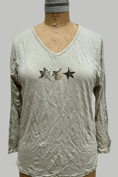 חולצת קרפ אלגנטית עם שרוולים ארוכים ומפתח וי מחמיא למראה נשי ומתוחכם. מעוטרת בדפוס עונתי ייחודי שמוסיף טאץ' של סטייל לכל הופעה.