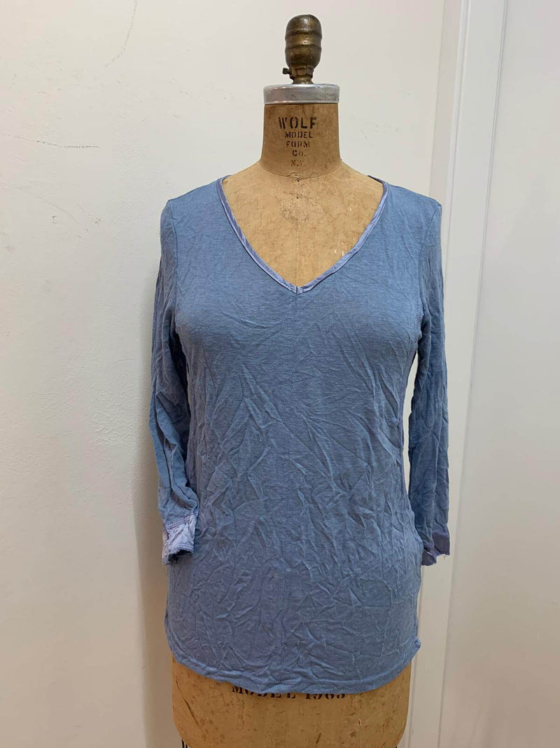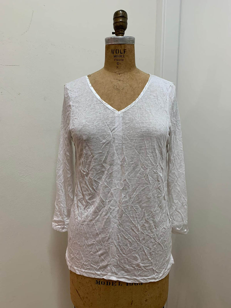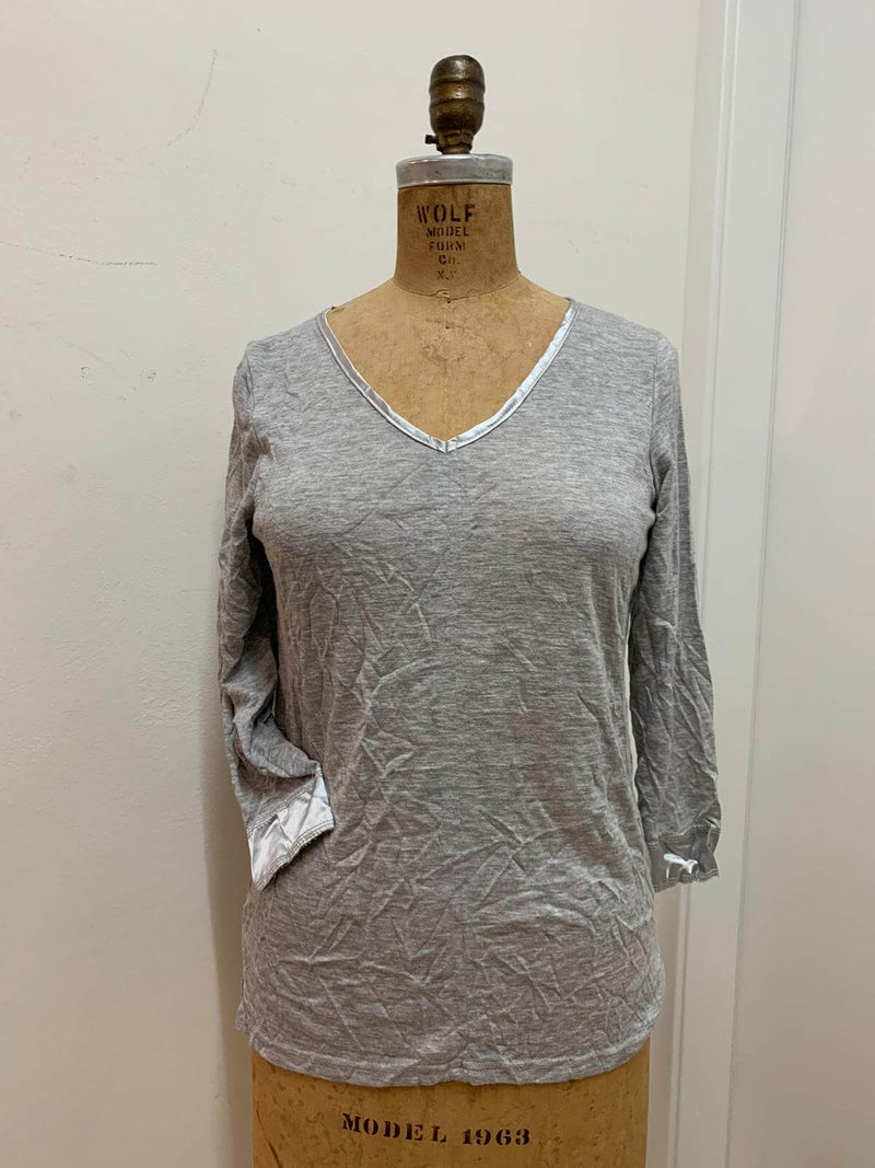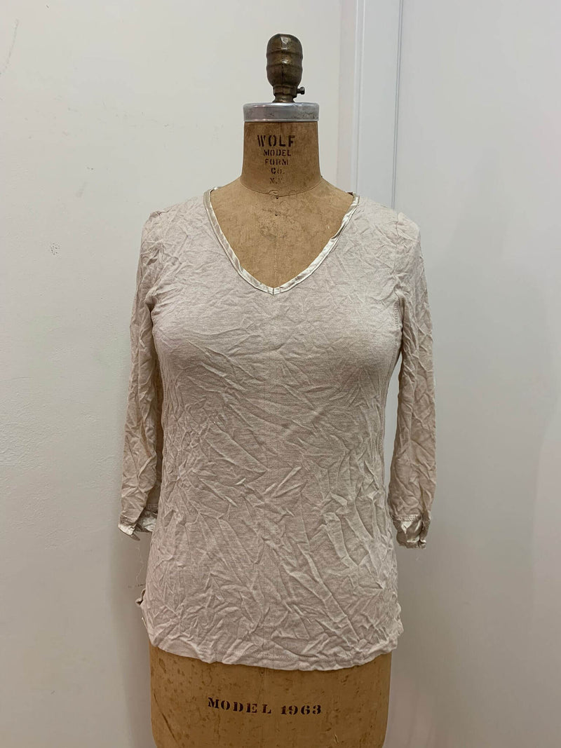 חולצת מחשוף וי נינוחה וזורמת על הגוף, מעוטרת בקעי סאטן טון על טון