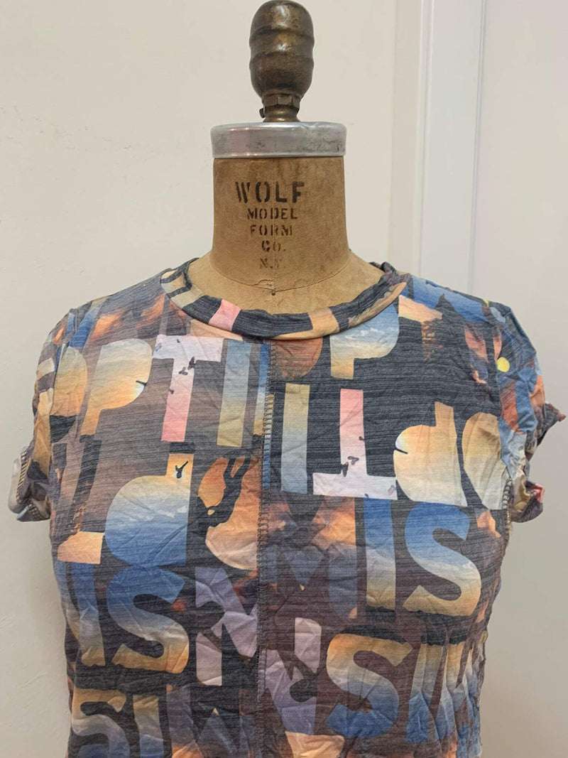 חולצה במפתח ניקי חיתוכי פרנסס ואמצע קדמי, הבד כולו דפוס דיגיטלי ייחודי ומאד מקורי