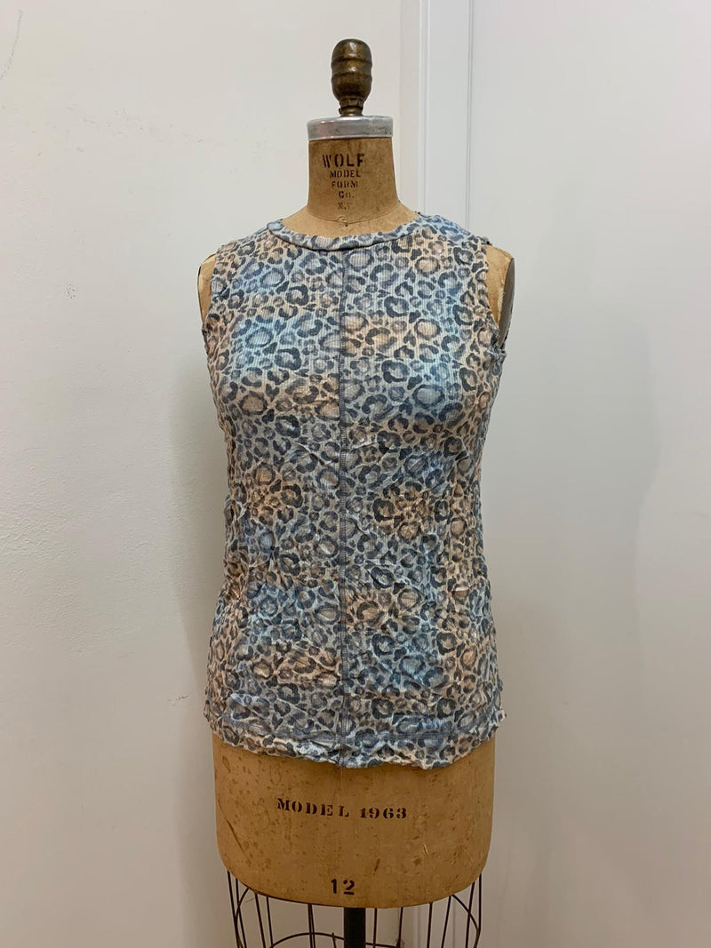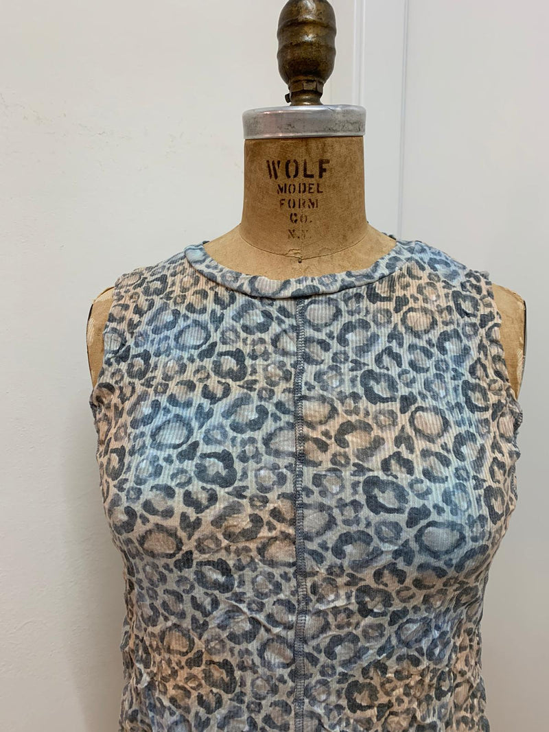 גופית מחשוף ניקי חיתוכי ספורט בדפוס מנומר בגווני תכלת חול או ירקרק מנומר
