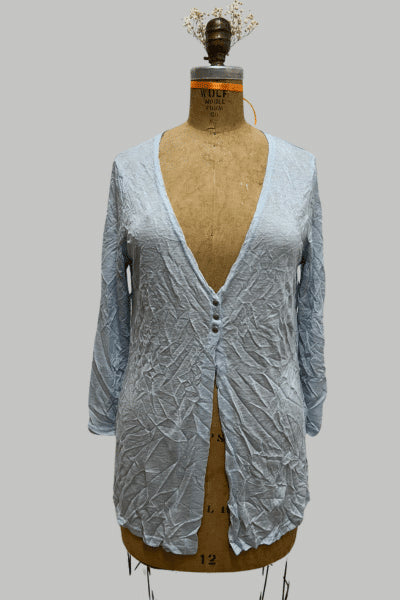 עליונית אוורירית בקימוט עדין עם מפתח וי עמוק ומחמיא, שרוול אורך מעבר למרפק. מתאימה מעל מגוון גופיות ולכל עונות השנה. ה-עליונית של העונה!