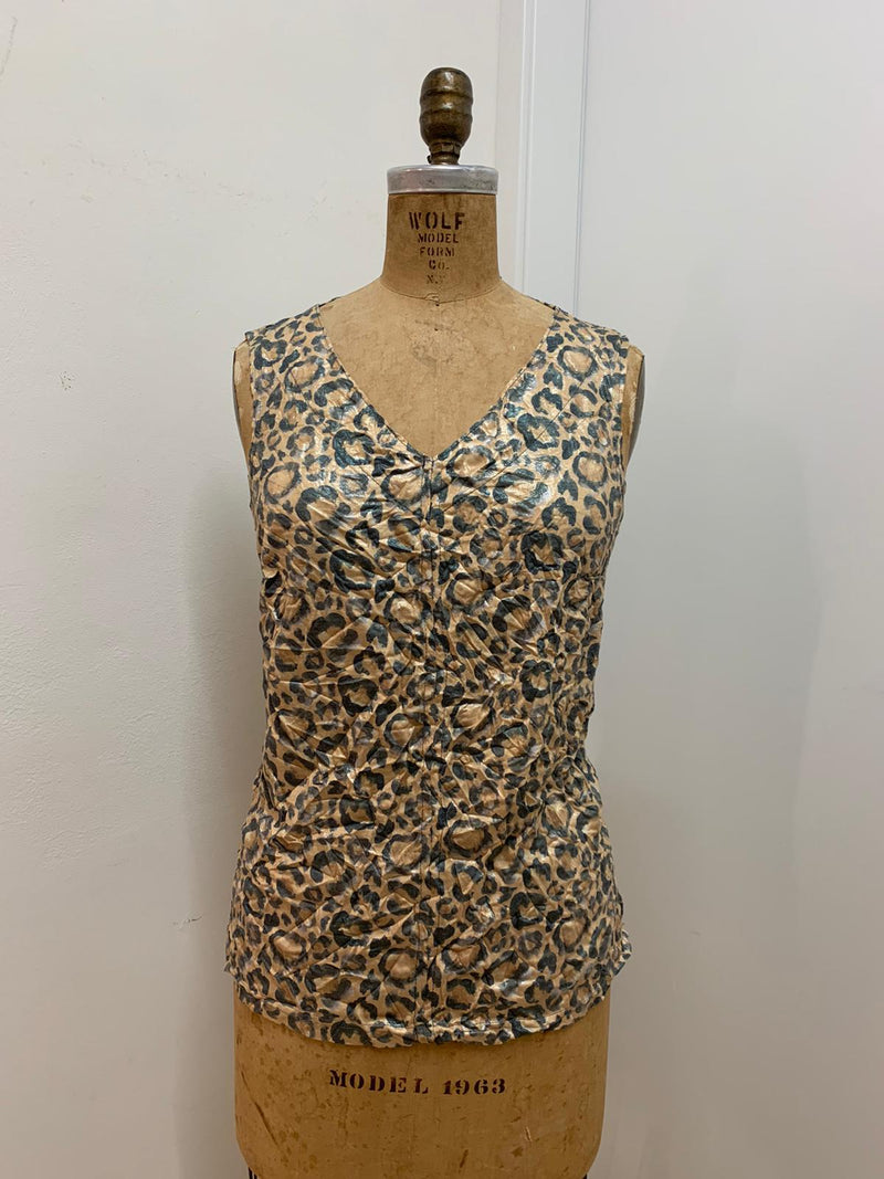 גופיית וי בהדפס מנומר מוזהב בברק עדין או בהדפס שחור