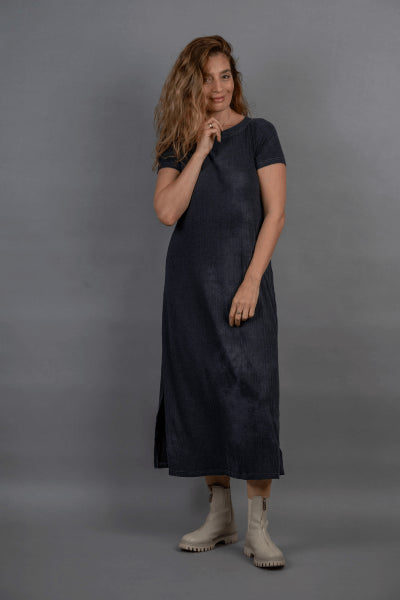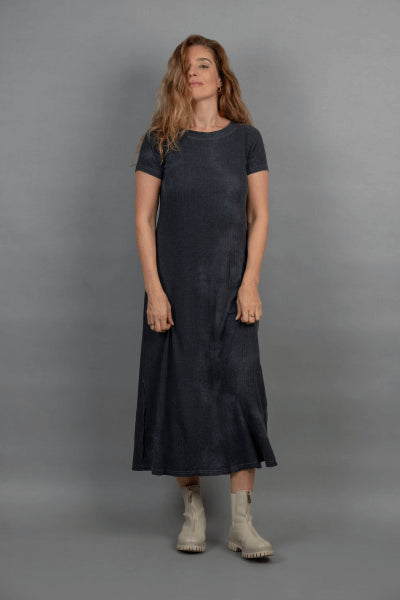 שמלת ריב שרול קצר, מחשוף סירה מעודן בצביעת גווני אפור
