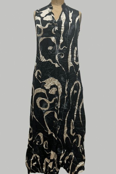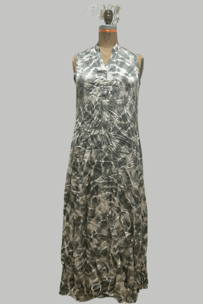 שמלה ארוכה זורמת ונעימה, צווארון סיני עדין עם מפתח וי מכופתר. אין נוחה ממנה לבוקר קייצי עם כפכף ולערב עם נעל עקב