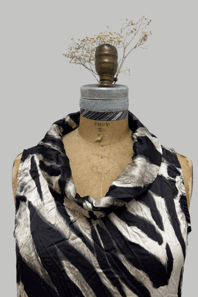הגזרה פשוטה ואלגנטית, הצווארון המעוגל והמקופל מעניק טאץ' עיצובי חדש, והבד- משי פוליאסטר נעים -– נשפך על הגוף ברכות מושלמת.