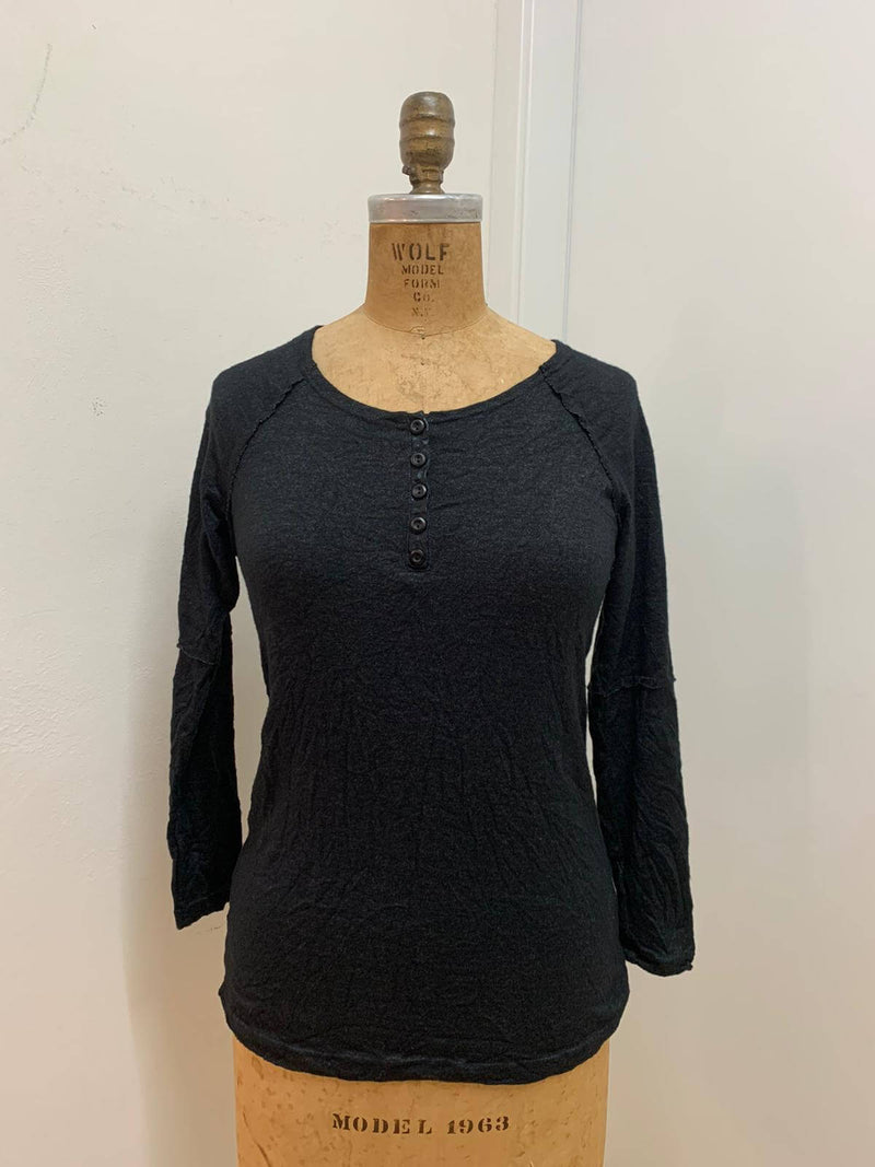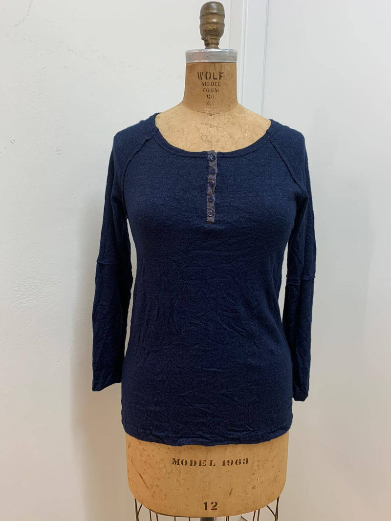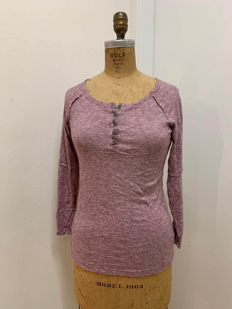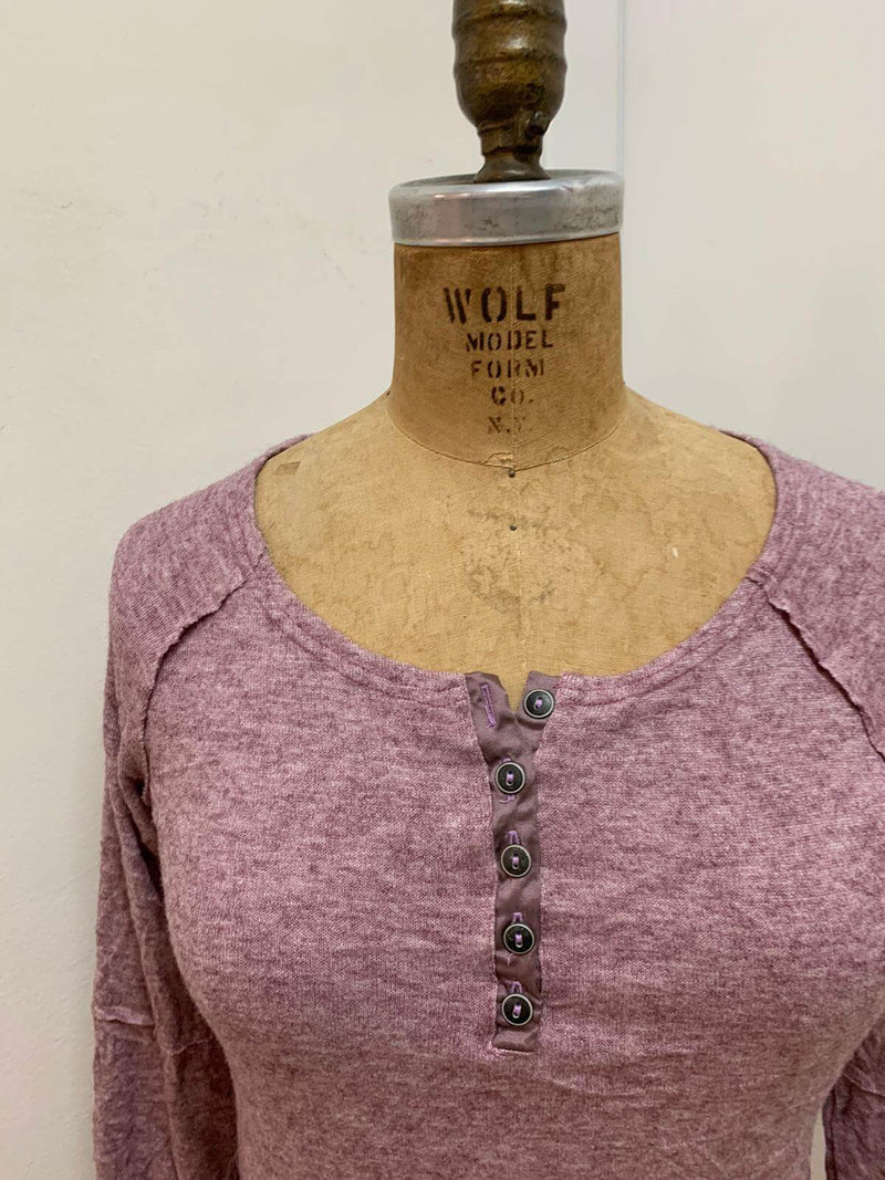 חולצת סוודר מפתח מעוגל שרוול רגלן מעוטרת ברכיסת כפתורים